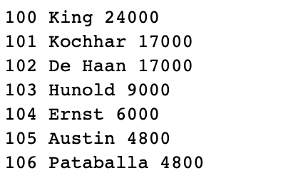 dbms_output.put_line(emp.employee_id || ' ' || emp.last_name || ' ' || emp.salary);