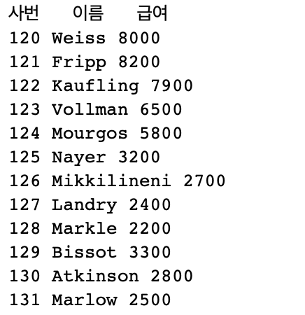 dbms_output.put_line('사번 이름 급여 ');