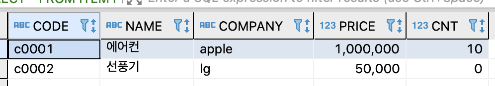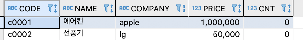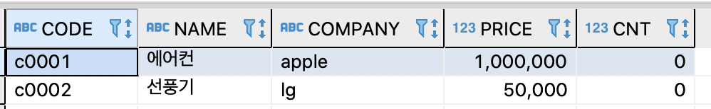 cnt NUMBER DEFAULT 0 -- 재고 수량