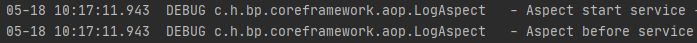 logger.debug("Aspect start service - {} / {}()", pjp.getSignature().getDeclaringTypeName(),