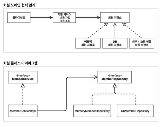 - MemoryMemberRepository를 넣을지 등은 서버가 뜨고 동적으로 결정되는 것이므로 클래스 다이어그램만으로 판단하기 어렵다.