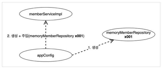 appConfig 객체는 memoryMemberRepository 객체를 생성하고,
