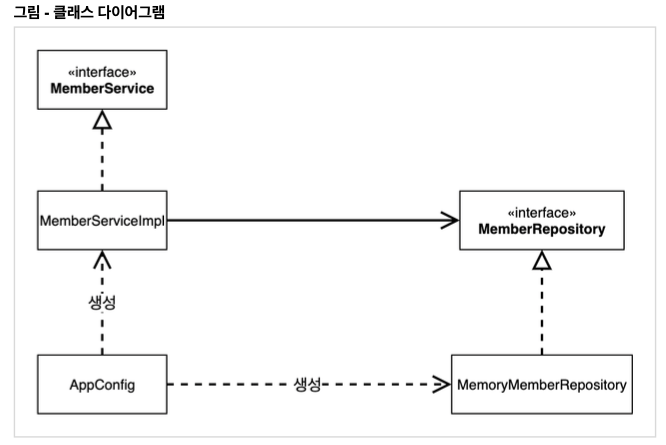 - MemberServiceImpl 은 이제부터 의존관계에 대한 고민은 외부에 맡기고 실행에만 집중하면 된다.