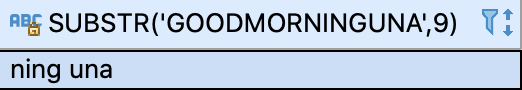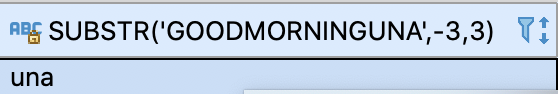 SELECT SUBSTR('good morning una', -3, 3) FROM dual;