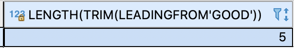 SELECT LENGTH(TRIM(LEADING FROM ' good ')) FROM dual;