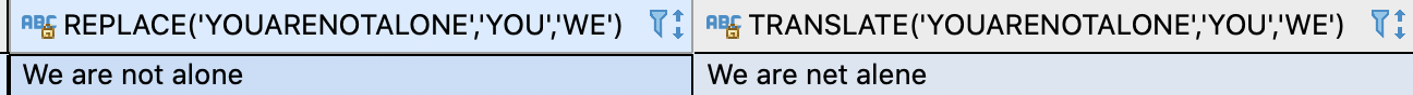 TRANSLATE('You are not alone', 'You', 'We')