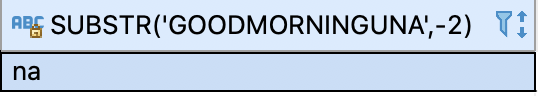 SELECT SUBSTR('good morning una', -2) FROM dual;