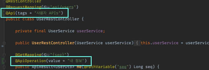 설정이 완료되었다면 어노테이션을 통해 API 명세를 작성한다.