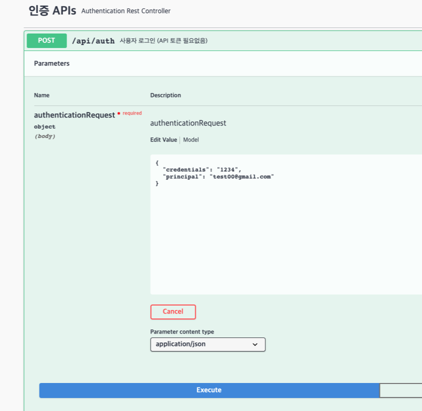 테스트 데이터 정보를 적고 Execute 버튼을 눌러 실행해보자.