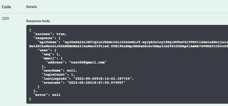 아래와 같이 Token 정보가 response 된 것을 확인할 수 있다.