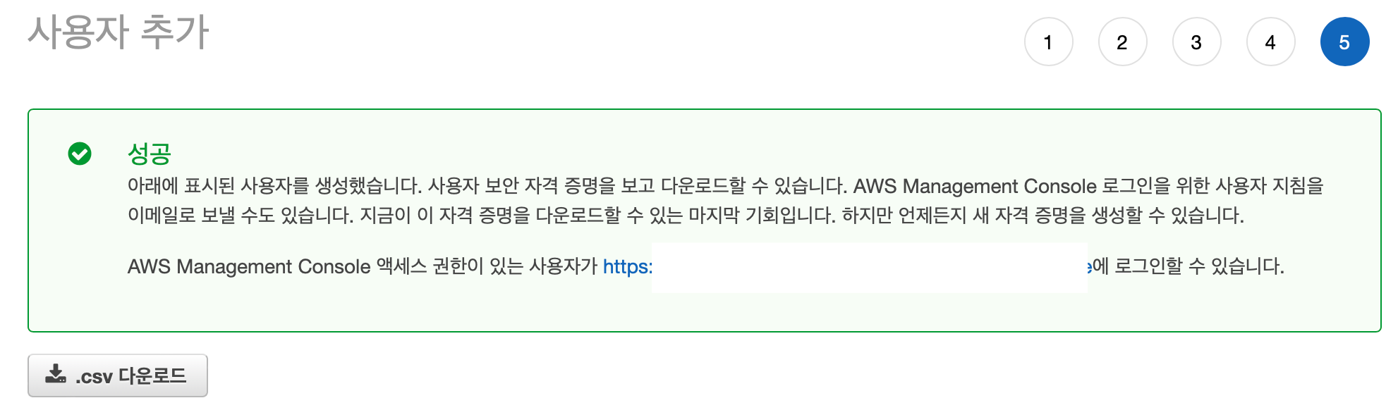 선택사항은 넘어가고 사용자를 만들고 나면 해당 사용자의 액세스 키 ID 와 비밀 액세스키가 나오는데,