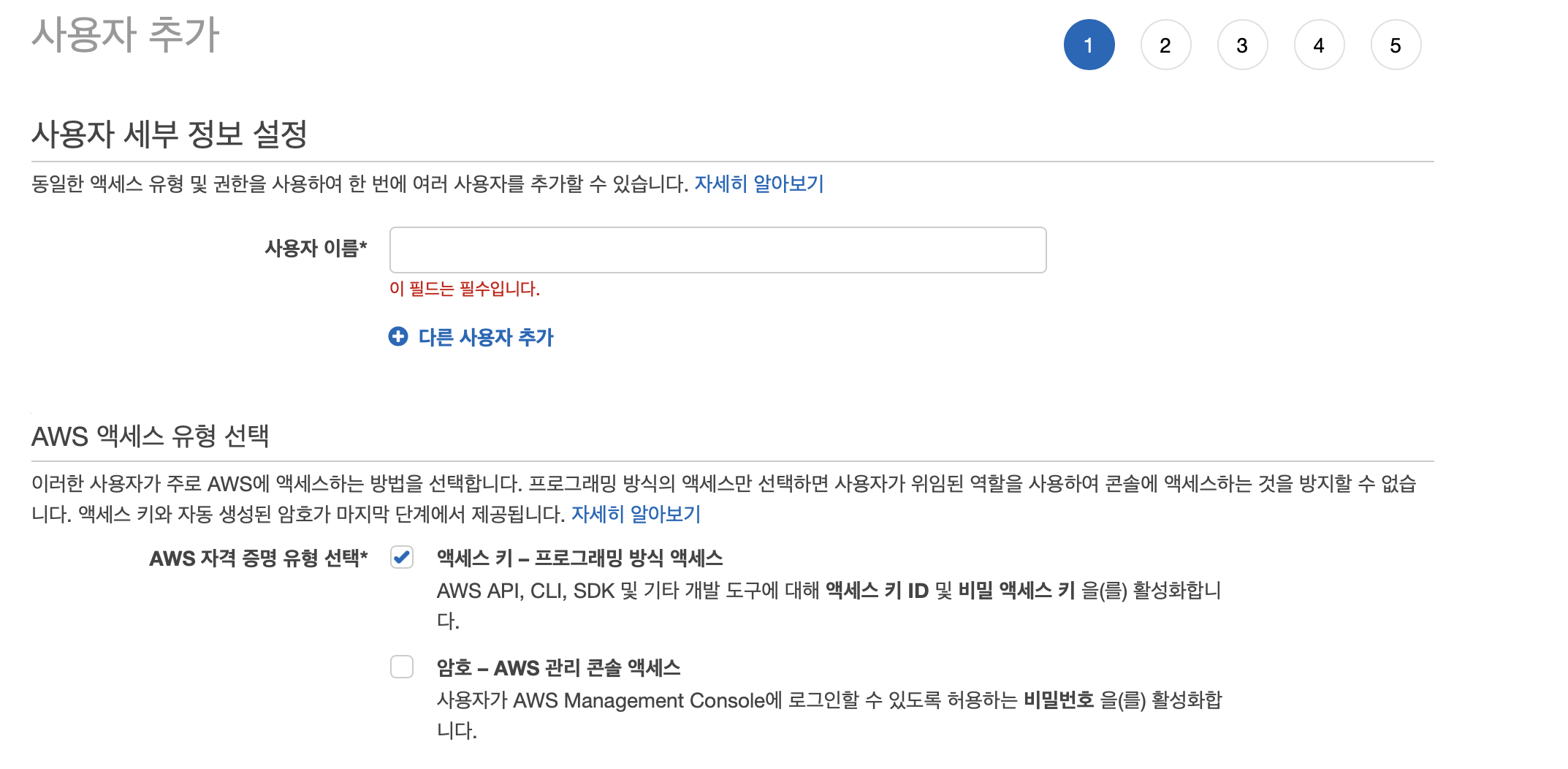 액세스 키 방식을 사용해서 IAM 사용자를 생성해보도록 하자.