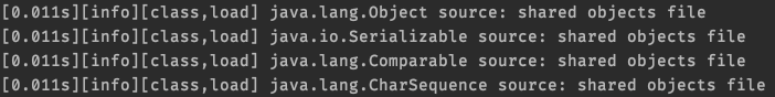 다음과 같은 옵션을 주면 클래스를 로딩할 때 로딩하는 라이브러리들을 확인할 수 있다.